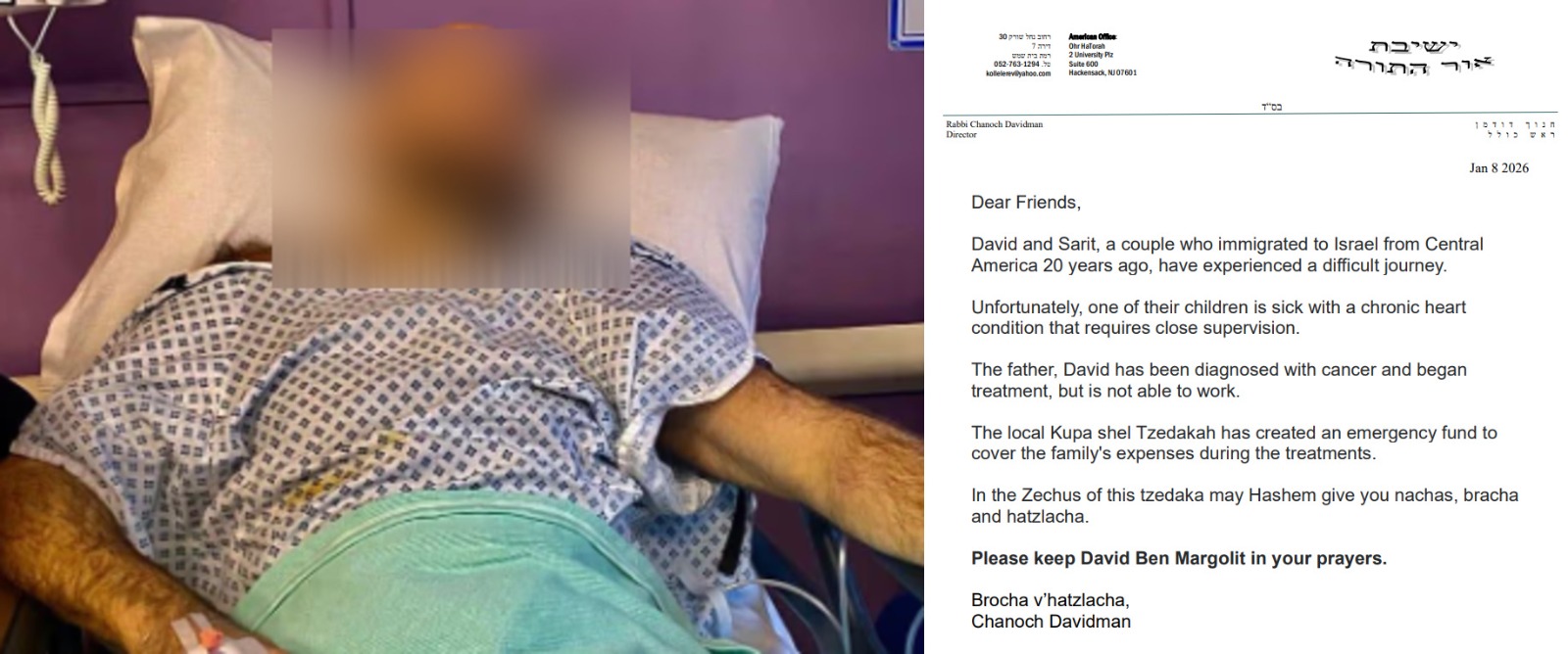 Please keep David ben Margolit in your tefillos—and please help urgently. The family is overwhelmed with medical and living expenses.