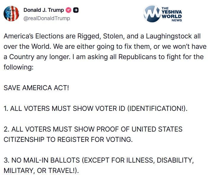 TRUMP: America’s Elections are Rigged, Stolen, and a Laughingstock all over the World. We are either going to fix them, or we won’t have a Country any longer. I am asking all Republicans to fight for the following…
