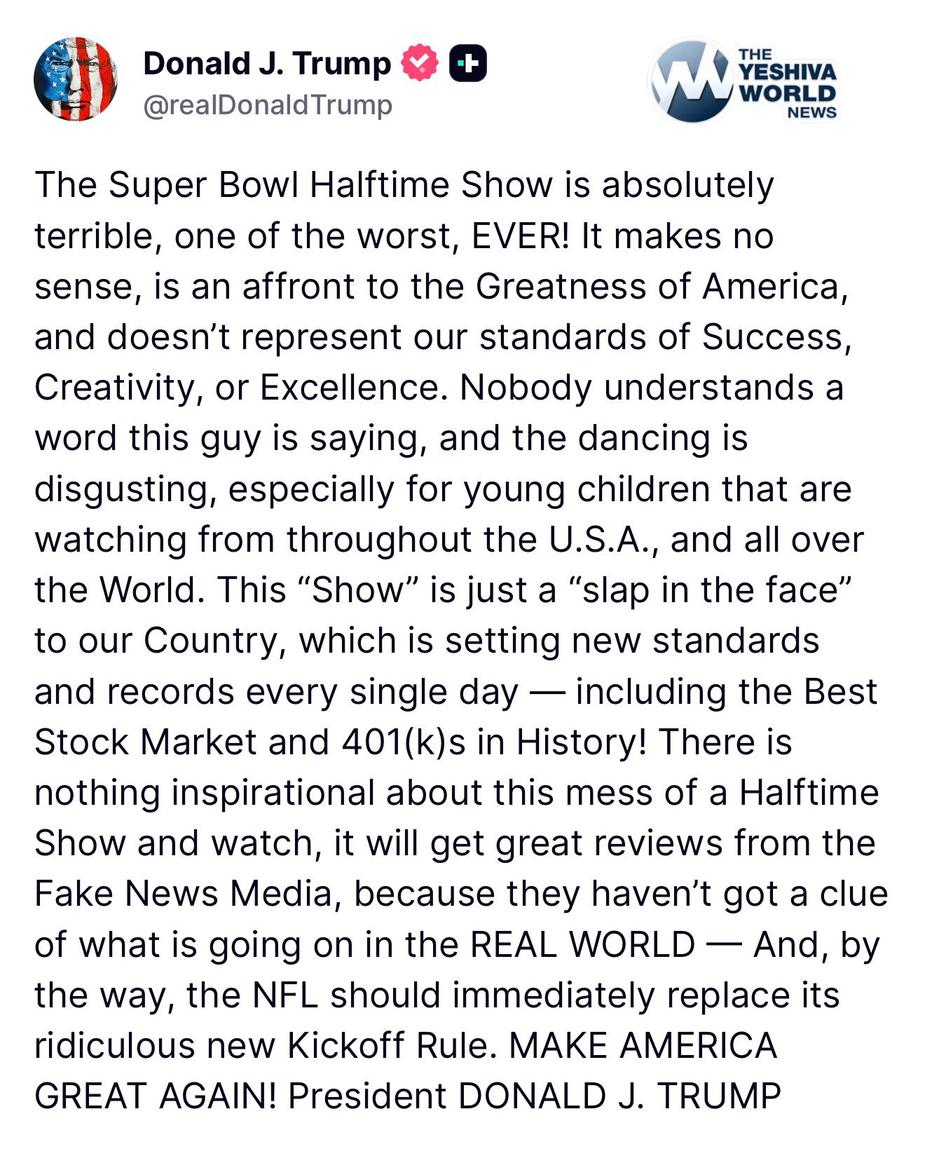 President Trump TRASHES the Trashy Super Bowl halftime Show