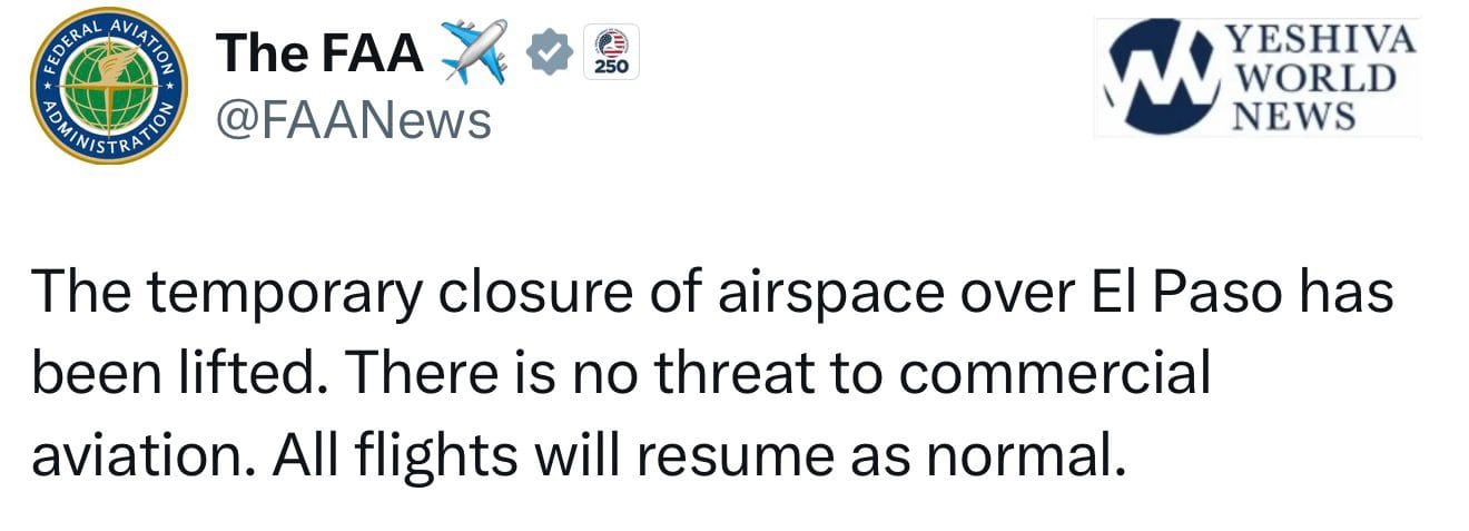 UPDATE: The FAA lifted the temporary airspace closure over El Paso on Wednesday morning, reversing a decision issued only hours earlier that had halted flights for 10 days.