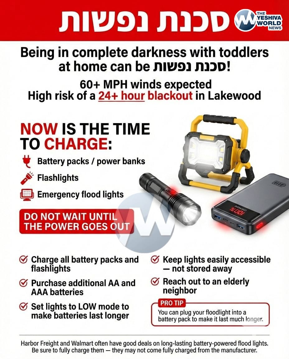With 60+ MPH winds expected and a high risk of a 24+ hour power outage, residents are urged to prepare NOW — especially homes with young children.