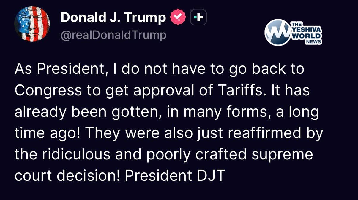 President Trump says the Supreme Court’s tariff ruling has “reaffirmed” that he does not need Congress to approve his tariffs.
