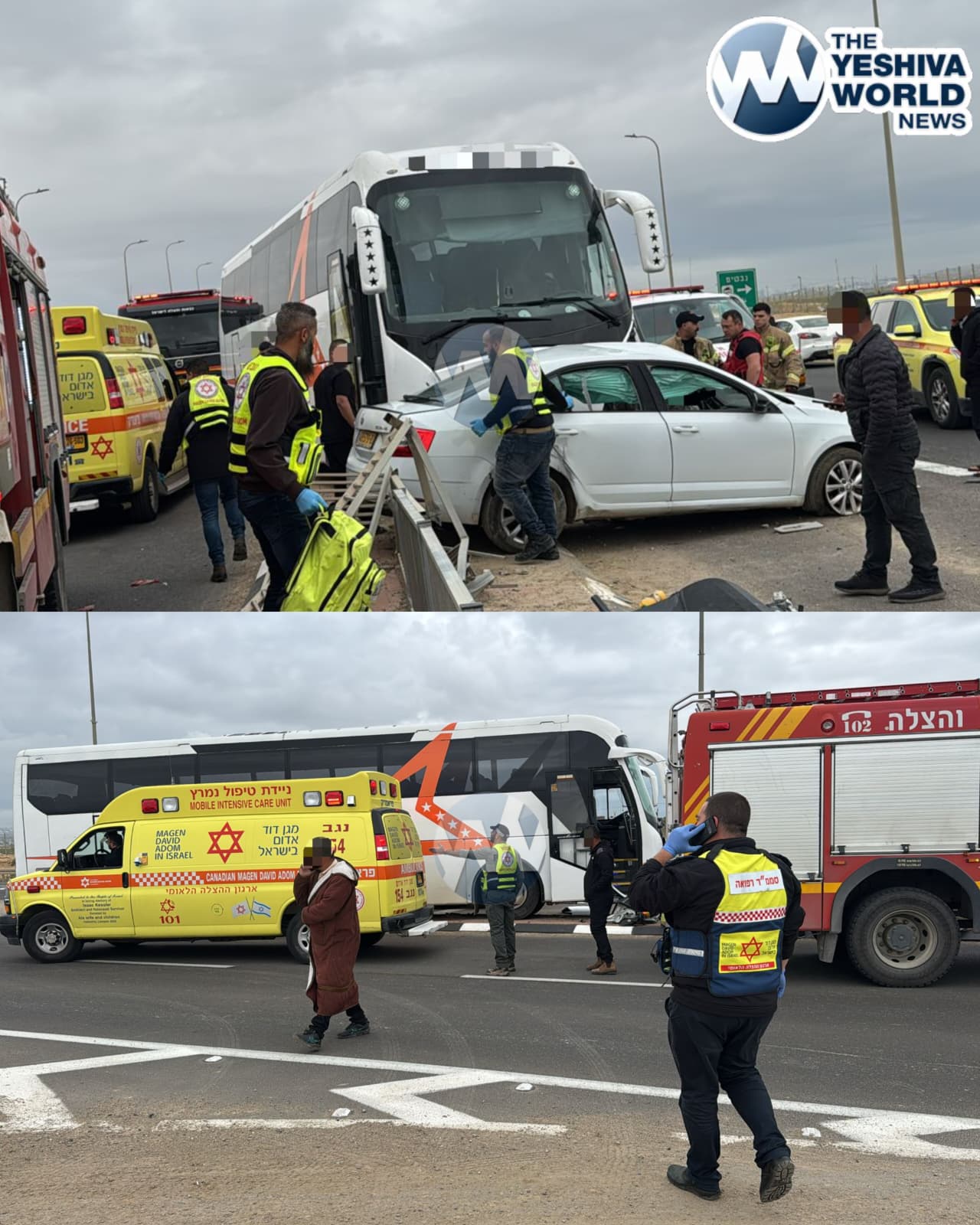 ANOTHER BUS ACCIDENT IN ISRAEL: At 8:09 a.m., Magen David Adom received reports of a crash between a bus and a vehicle on Route 25 near Nevatim.