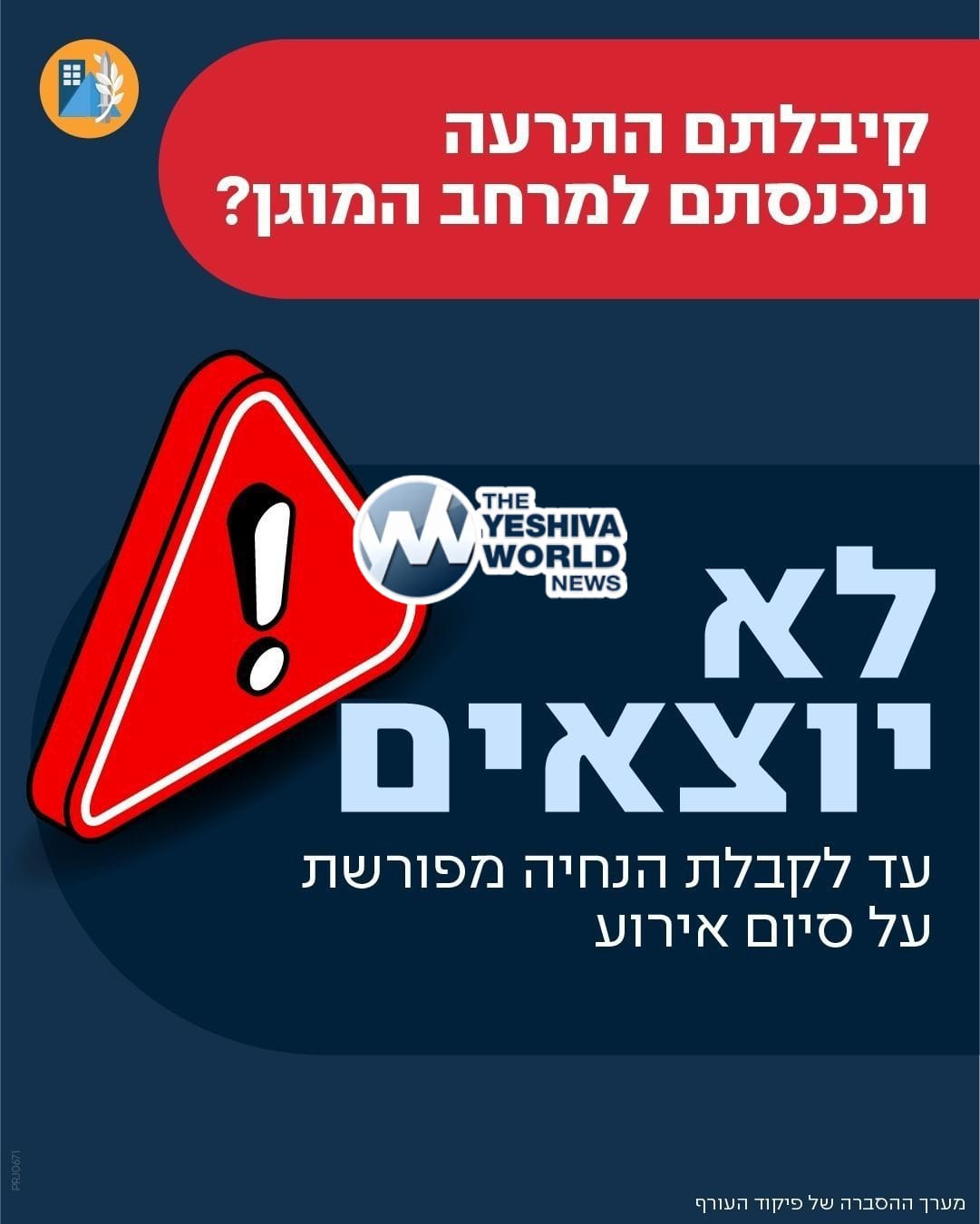 🚨 The IDF is clarifying that if you receive an alert, you must remain inside the protected area and not exit until receiving explicit instructions from Home Front Command.