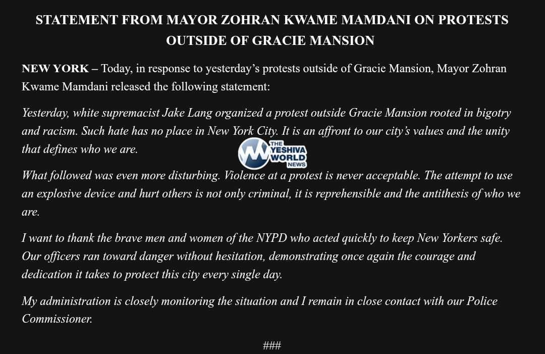 NYC Mayor Mamdani released a statement after the NYPD confirmed that the device thrown at a protest outside Gracie Mansion were in fact explosive.