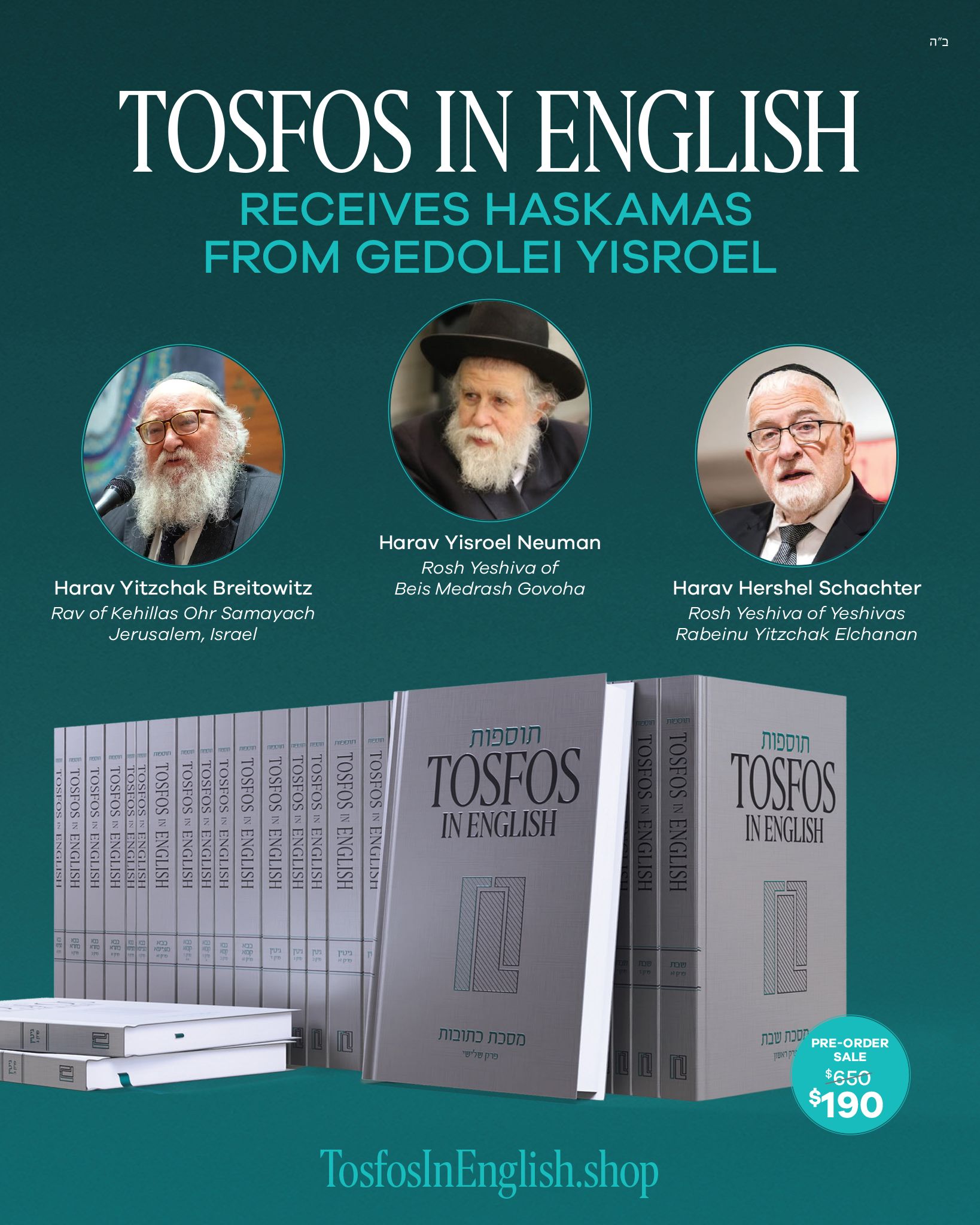 Pre-order offer ends Rosh Chodesh Nissan