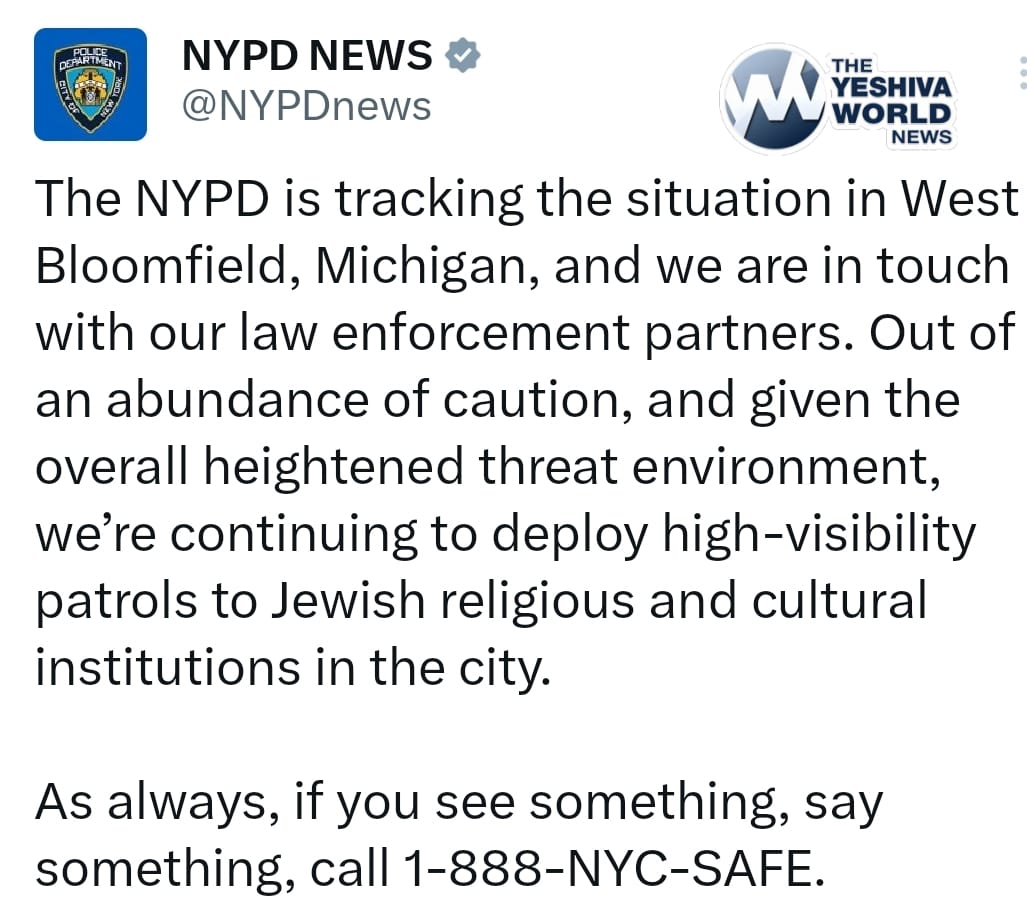 The NYPD released a statement following the shooting at Temple Israel in West Bloomfield Township.