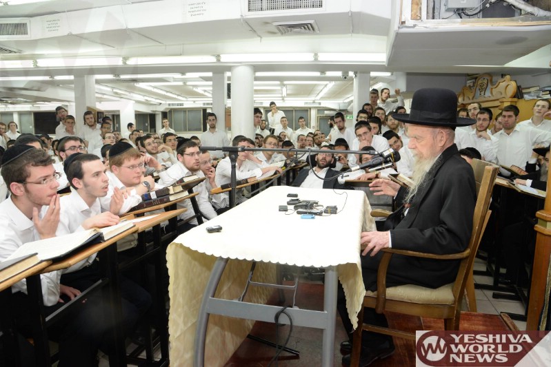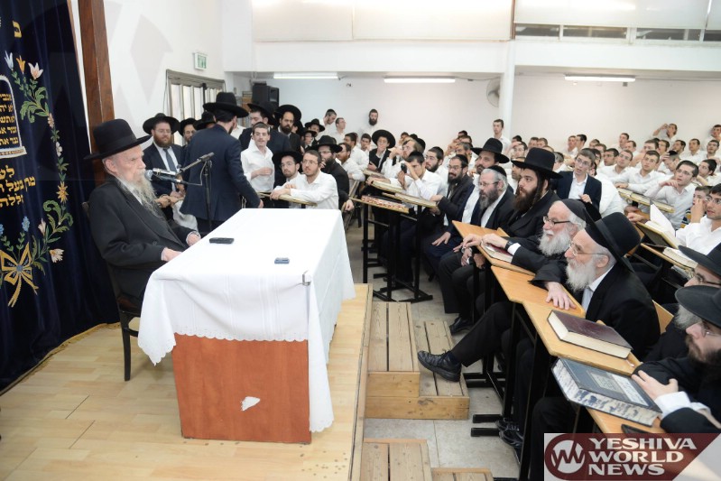 Photo Essay: Hagaon HaRav Gershon Edelstein Giving A Shmooze In Preparation For Shavous In Yeshivas Orchos Hatorah (Photos by JDN)