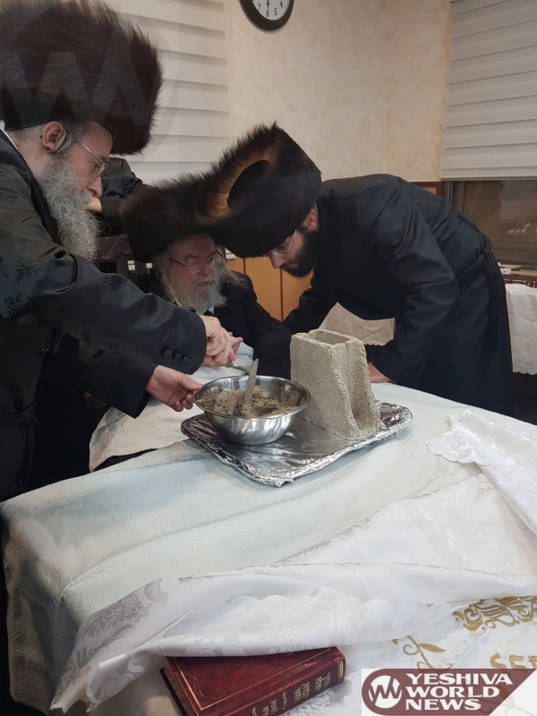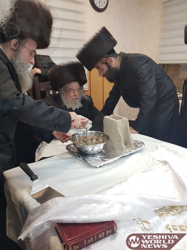Photo Essay: Belzer Rebbe Pouring The Even Hapinah For The New Belzer Shteebel In Lakewood (Photos by JDN)