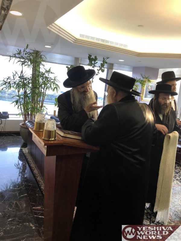 Photo Essay: Toldos Ahron Rebbe Davens Mincha At The Offices Of Moshe Wolfson In Manhattan (Photos by JDN)