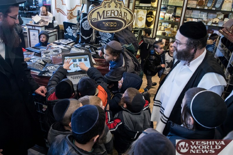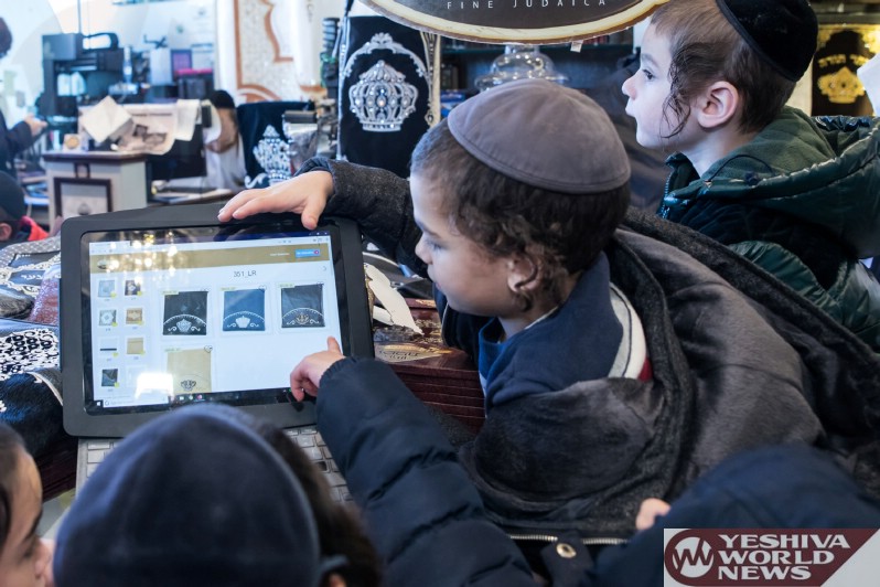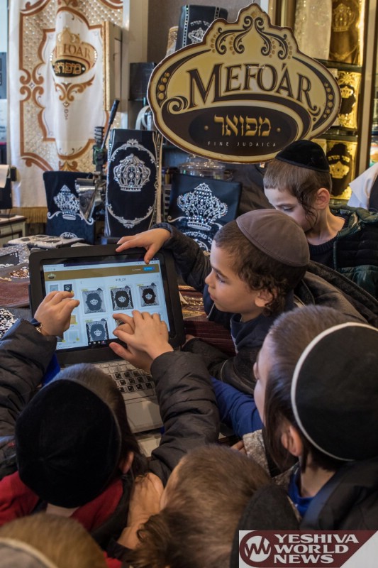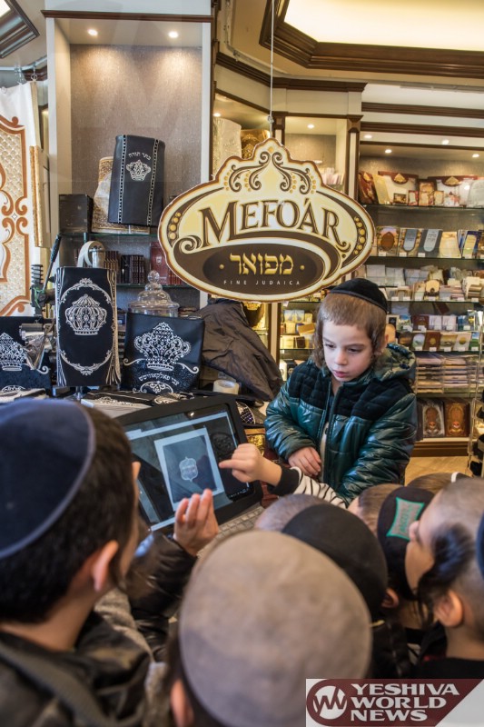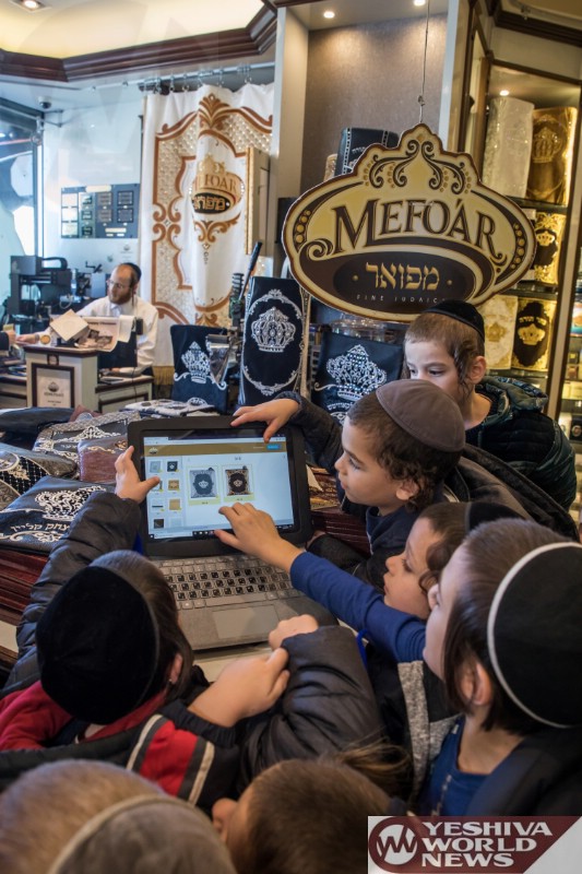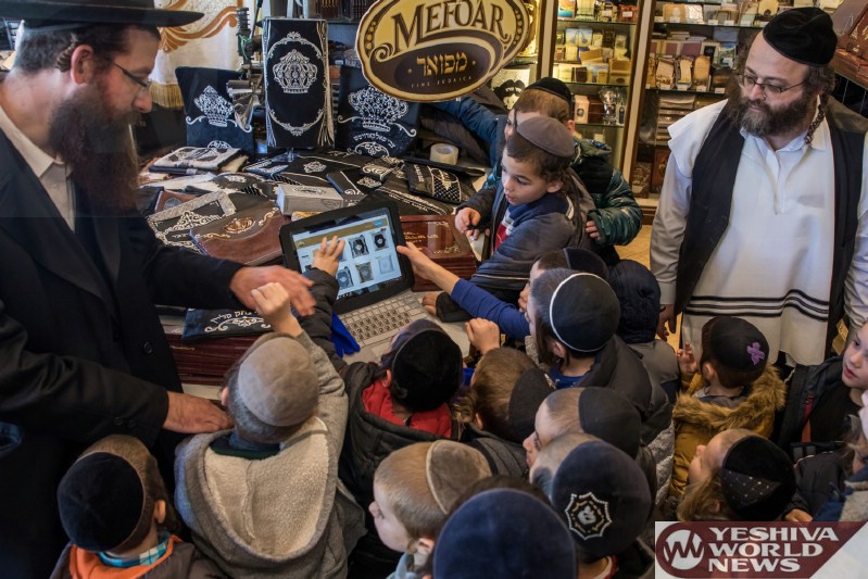 Photo Essay: Students From The Gan Yisroel Cheder On A Visit To Mefoar Judaica Headquarters, Which Included A Chance To Familiarize Themselves With The Process Involved In Mefoar’s Popular Design-It-Yourself Tefilin Bags (Photos by JDN)