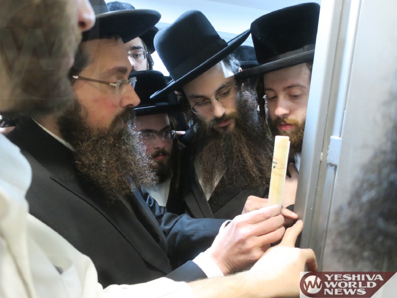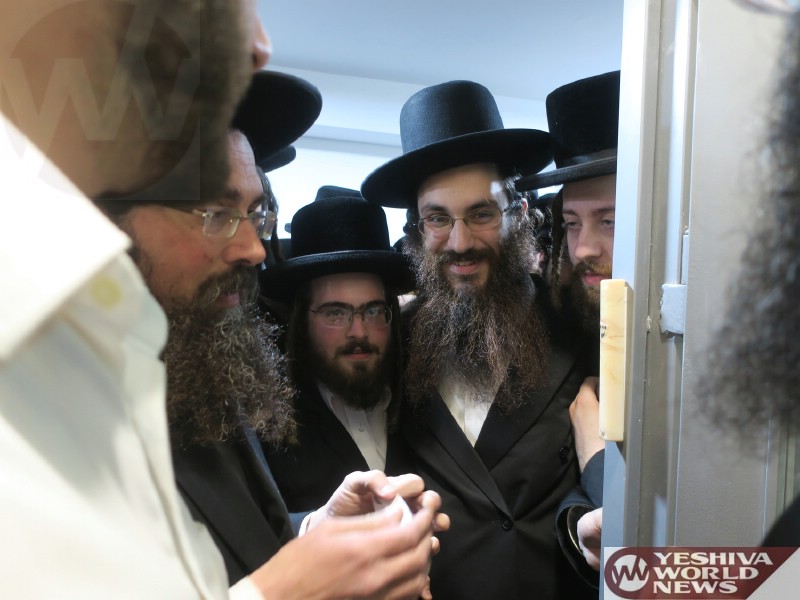 Photo Essay: Mir Rosh Yeshivah Affixes A Mezuzah At The New Shul For The Chasidishe Bachurim In Yeshivas Mir (Photos by JDN)