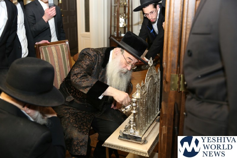 Gorgeous silver chanukios. These Admorim must be very very very rich to afford all that stuff.
