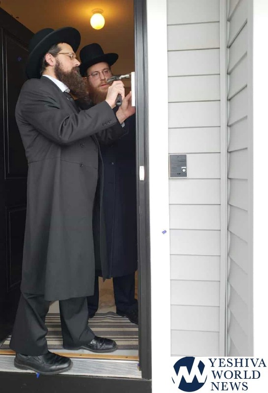 Photo Essay: Mir Rosh Yeshivah, Rav Eliezer Yehudah Finkel Affixing A Mezuzah At The House Of A Talmid In Lakewood (Photos by JDN)