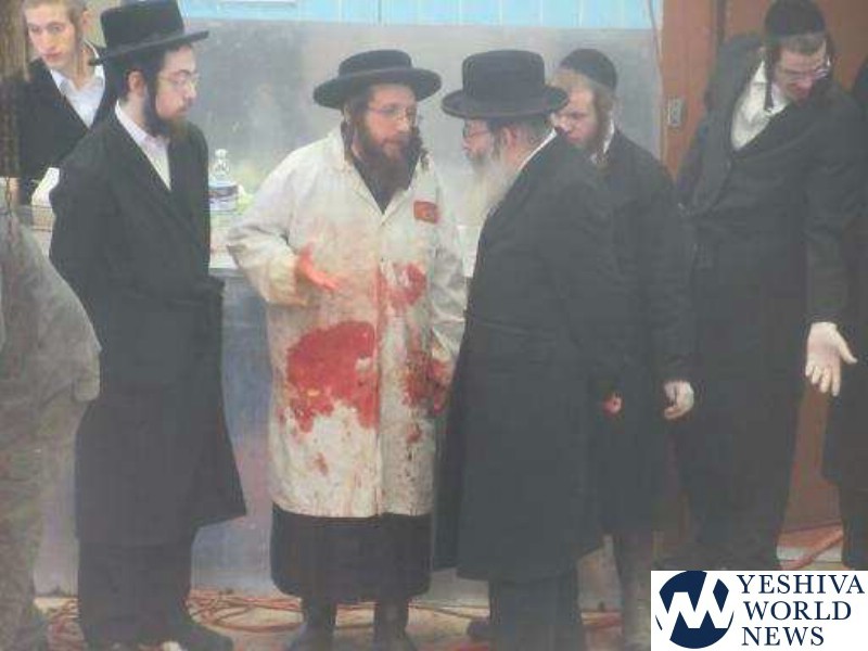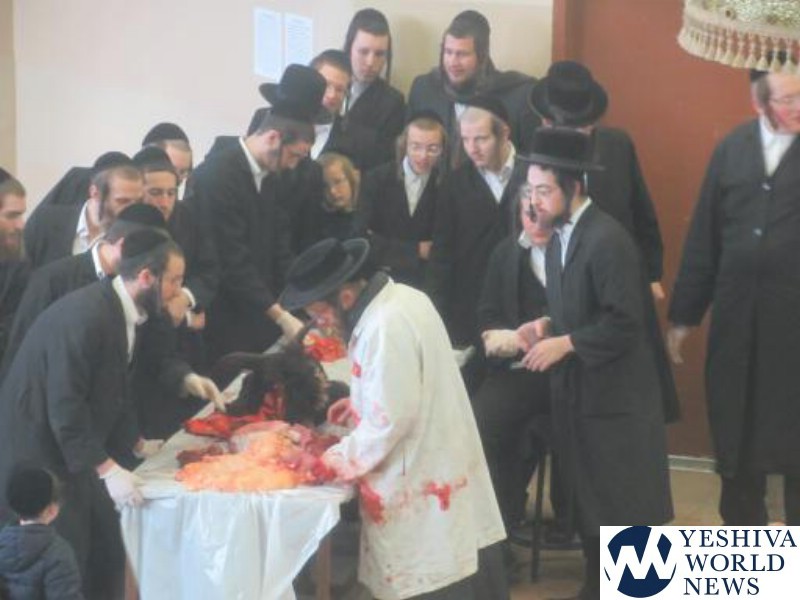 Photo Essay: Shechting A Cow In Yeshiva Gedolah Visnitz In Gibbers (Photos by JDN)