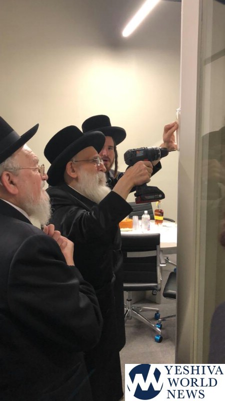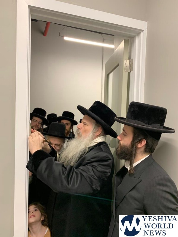 Photo Essay: Kevias Mezuzah At The Offices Of Son Of The Bluzhev Rebbe (Photos by JDN)