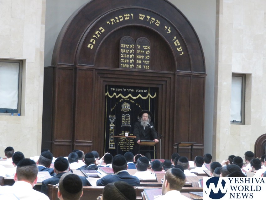 Hamashpiah HaGaon Harav Elimelech Biderman giving a shiur for Chodesh Nissan in Yeshivas “Maor HaTalmud Rehovot” the Yeshiva of HaGaon HaRav Simcha Hacohen Kook Shlita.