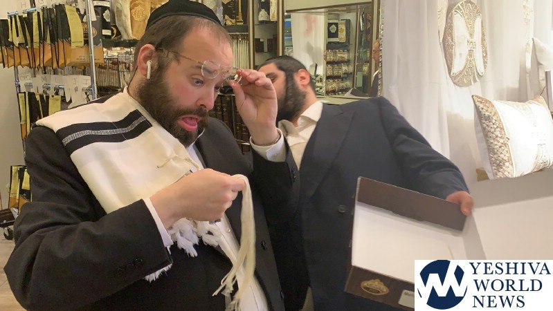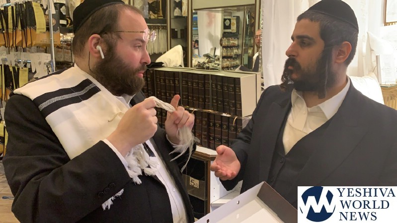 Photo Essay: Rav Shaya Freund and Rav Dovid Appel Gaboim Of Harav Yaakov Meir Shechter Buying Him Tzitzis And Hagados At Mefoar In Boro Park (Photos by JDN)