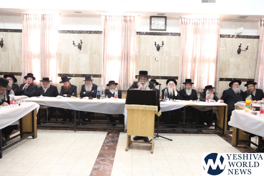 Photo Essay: Toldos Yehudah Stitchin Rebbe Giving A Shiur In Viznitz Shul In Yerushalayim (Photos by JDN)