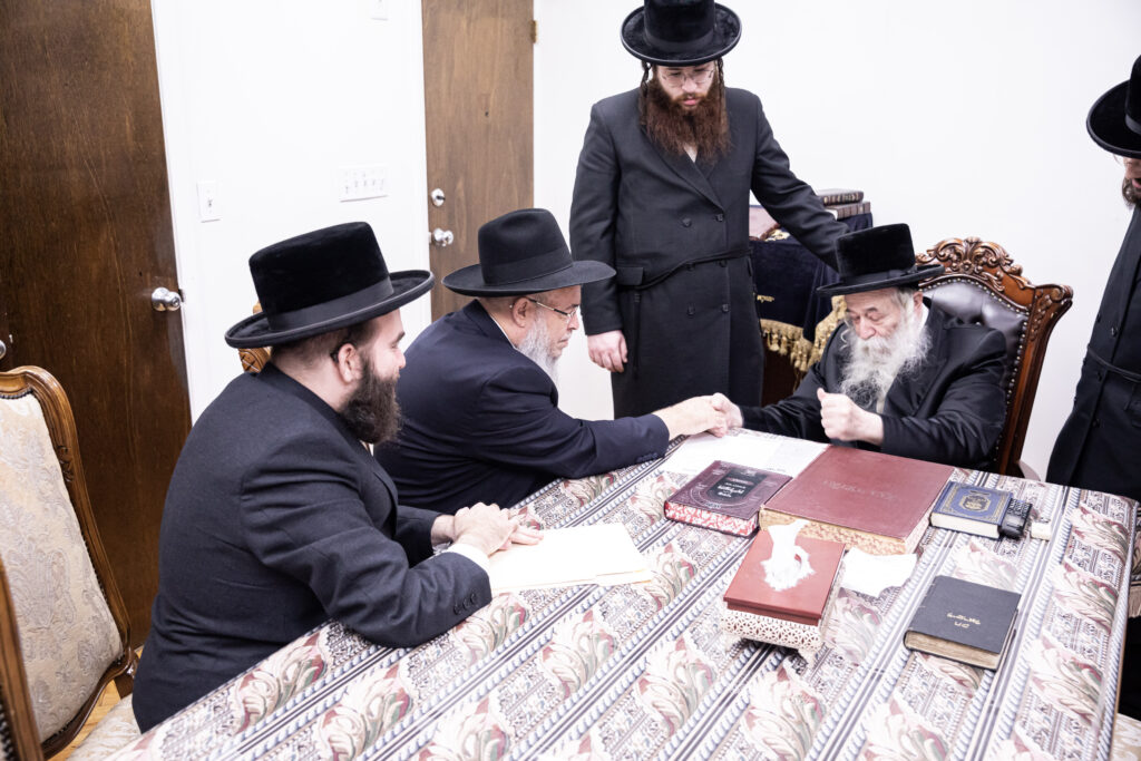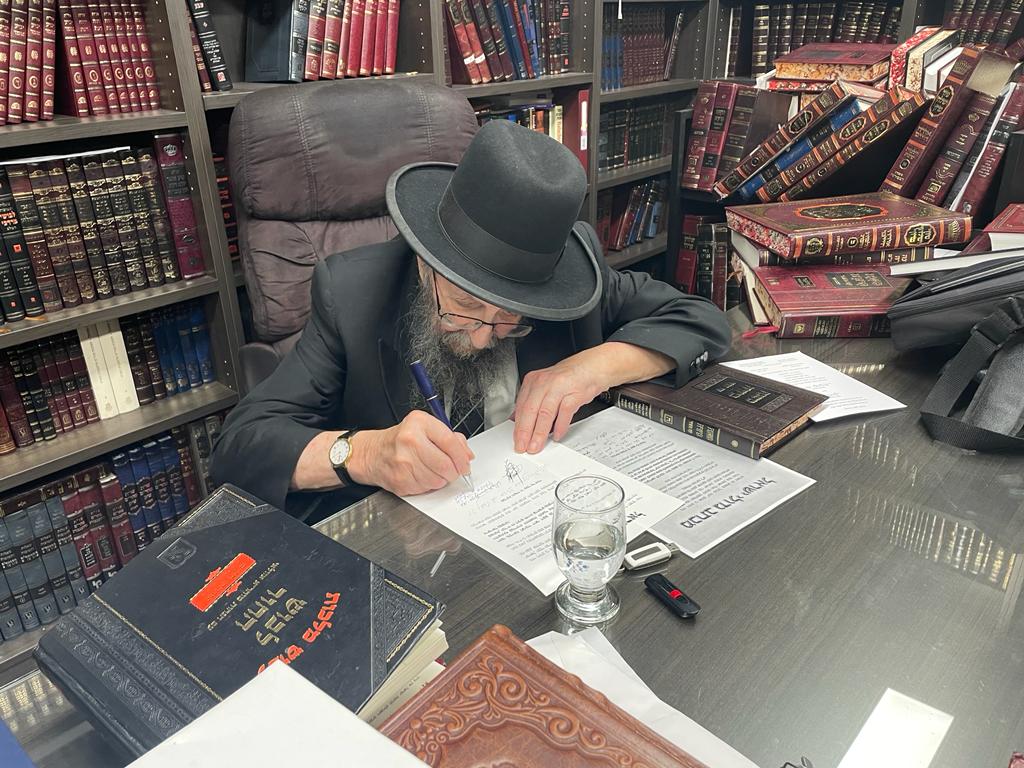 R’ Chananya Chollak, president of Ezer Mizion, at a recent visit to the US. He is seen receiving brachas and support from leading Rabbonim urging the public to get a swab test that can potentially save many Yidden across the globe.