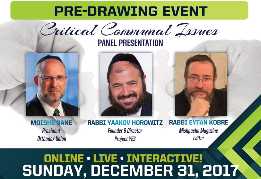 This panel will convene on Sunday Night December 31st, at 8:30 P.M. as a headline to the Jewish Heritage Center’s Annual Chinese Auction. The discussion will stream live from JHCauction.com and will involve active participation from the audience watching from home. Questions can be submitted in advance or during the stream by clicking here. Join us for this productive and stimulating discussion. Come listen and be heard!