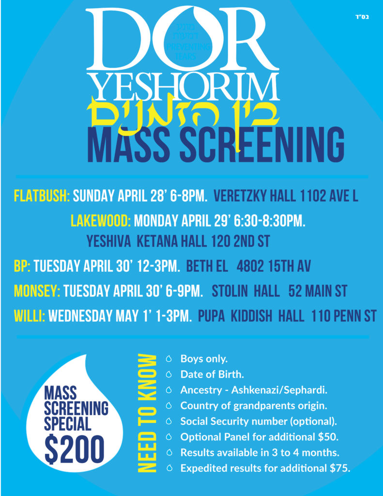 Dor Yeshorim Bein Hazmanim Screening for boys
