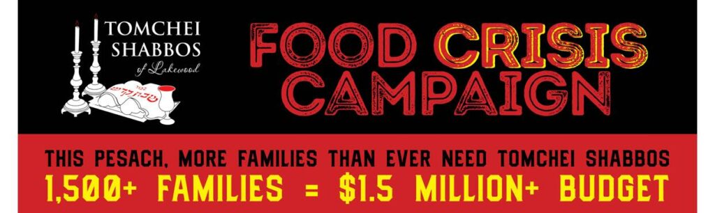 Suppliers are increasing prices, more people are requesting assistance, and every part of the deliveries have to be reworked for the new health concerns. As such, the budget for the already expensive Pesach season is rapidly ballooning to astronomical proportions. But, with fundraising limited to phone and emails, Tomchei Shabbos is struggling mightily to keep up. Only with your help can we manage this tremendous Food Crisis together.