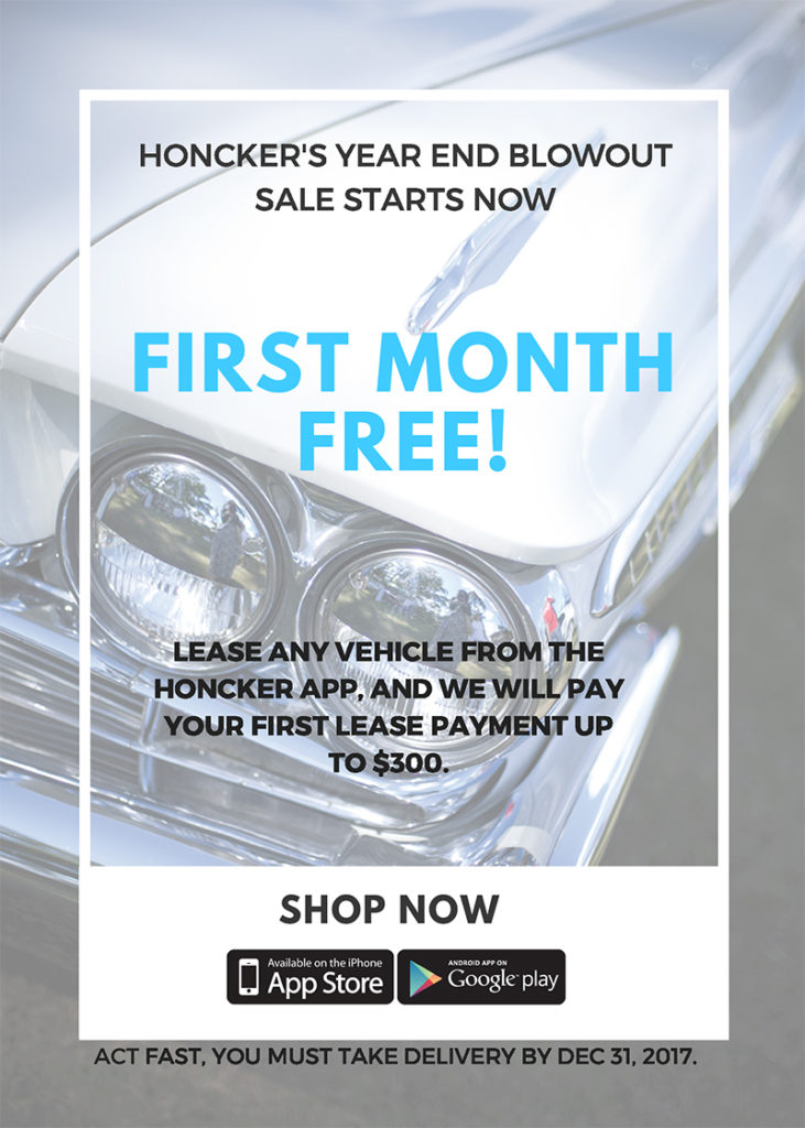 Lease any vehicle from the Honcker app, and we will pay your first lease payment up to $300.