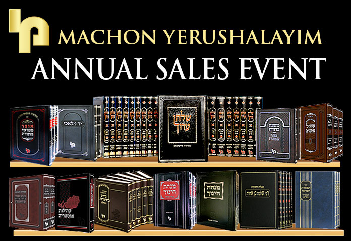 There are only a few days left for the great sales and special prices of the Annual Sales Event of Machon Yerushalayim.  The Machon is famous for restoring and glorifying ancient seforim, its uncompromising quality of Torah research, locating manuscripts, comparing texts and versions, correcting mistakes that crept into previous printings, and the unimaginable amount of work it puts into each sefer until the finished product can be brought to the public.