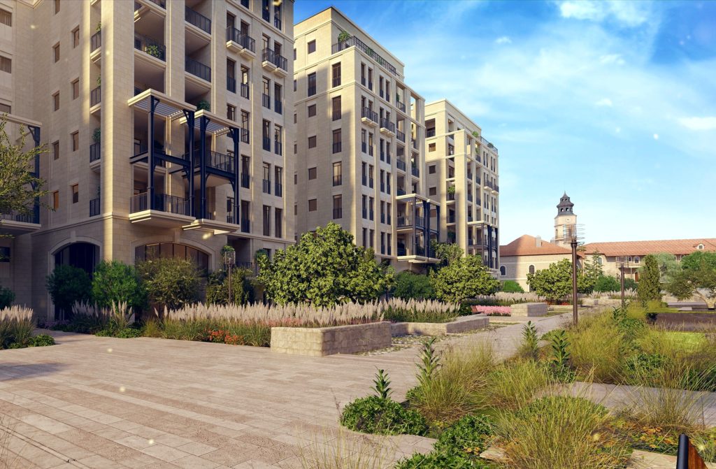 The facades of the buildings are interwoven with unique Jerusalem stone, and the artistic components are made by some of the best construction artists in their respective fields in Israel. The interior design elements, like the exterior specifications, come from the finest suppliers of materials in the country. The high-class luxury kitchens, the flooring and their treatment reflect the luxury and splendor of the design as do the aluminum windows with the charming wood that envelops them, creating a magnificent harmony that connects with the historical artistic concept.