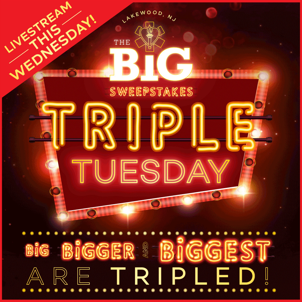 This is the last chance to get any special on The BiG Sweepstakes. So what are you waiting for? Enter today! Don’t wait another minute to TRIPLE your chances to win BiG, BiGGer or BiGGEst! Enter Hatzolah’s BiG Sweepstakes now! Just go to lakewoodhatzolah.com/auction, email [email protected], or call 732.363.5600.