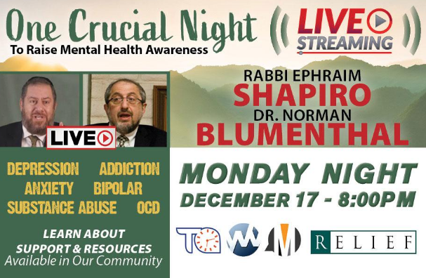 This coming Monday evening, December 17th, at 8:00 PM, the Baltimore community will host an event of critical importance to the Orthodox Jewish Community. The goal is to raise awareness of mental health issues in our community and to provide detailed information as to how one can seek professional assistance for those in need. The title of the event is: One Crucial Night to Raise Mental Health Awareness. It will be held at Bnai Jacob Shaarei Zion synagogue in Baltimore. The program will stream LIVE on TorahAnytime.com, TheYeshivaWorld.com and Matzav.com. The event was planned by Mrs. Suzann Lasson MOTR/L, an occupational therapist with a specialty in behavioral health at Levindale Hebrew Geriatric hospital with 15 years’ experience in facilitating group psycho-social therapy groups and individual therapy. Her co-organizers included Rabbi Yisrael Slansky, Director of Baltimore’s RELIEF Resources Services, and Eric Reitberger, president of Bikur Cholim of Baltimore.