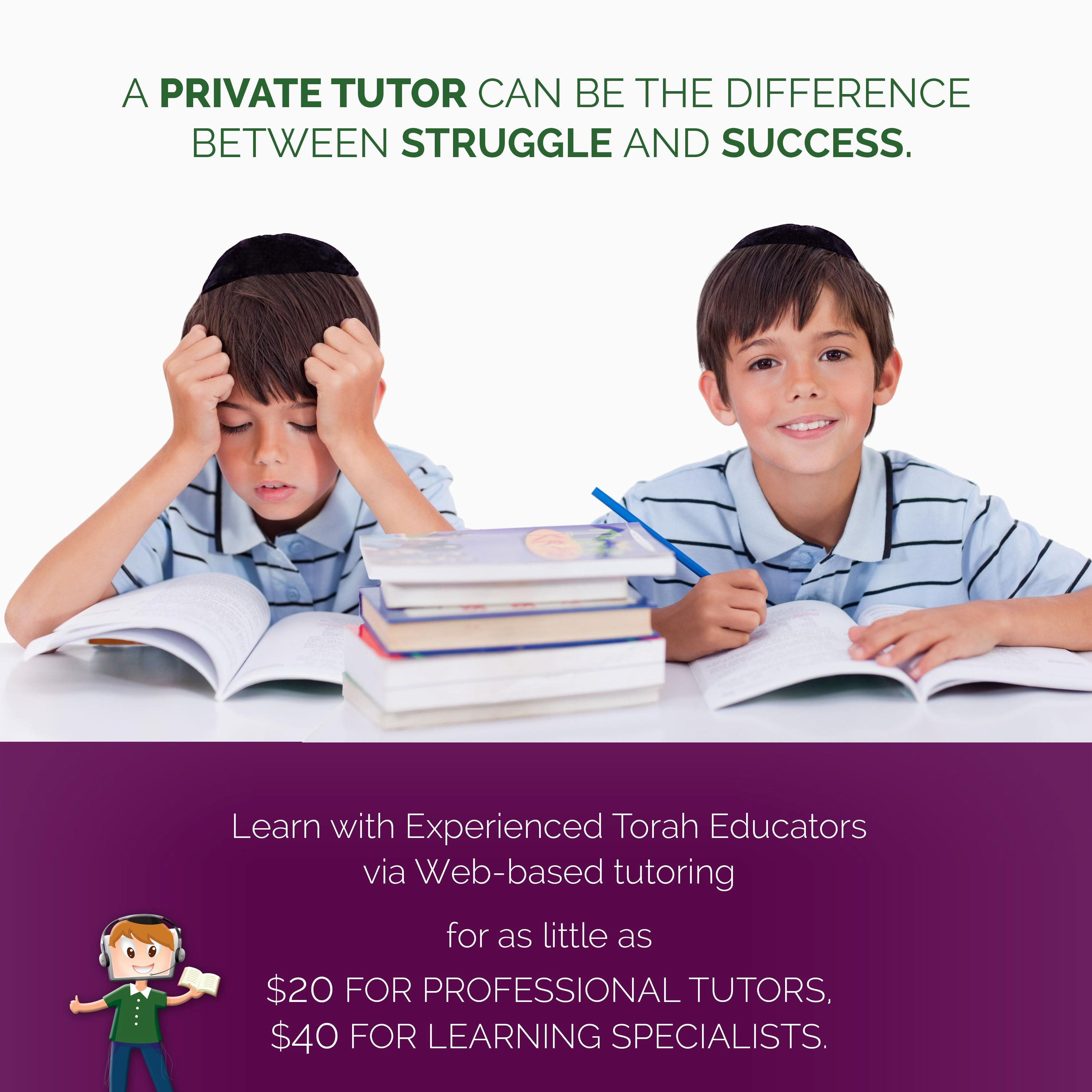 Naaleh Torah Tutors is the biggest game-changer in Jewish Education today! Until now when a child needed help in limudei kodesh subjects, their parents had to hire a private tutor to help them overcome their challenges. The cost of a private teacher can be prohibitive, as the average tutor charges between $60 to $100 an hour. Rav Nosson Muller of Chicago’s Tiferes Tzvi told Mishpacha magazine, “it’s like taking on a second mortgage.” One parent bemoaned the fact that “[the tutor] took more money per hour than an electrician.”
