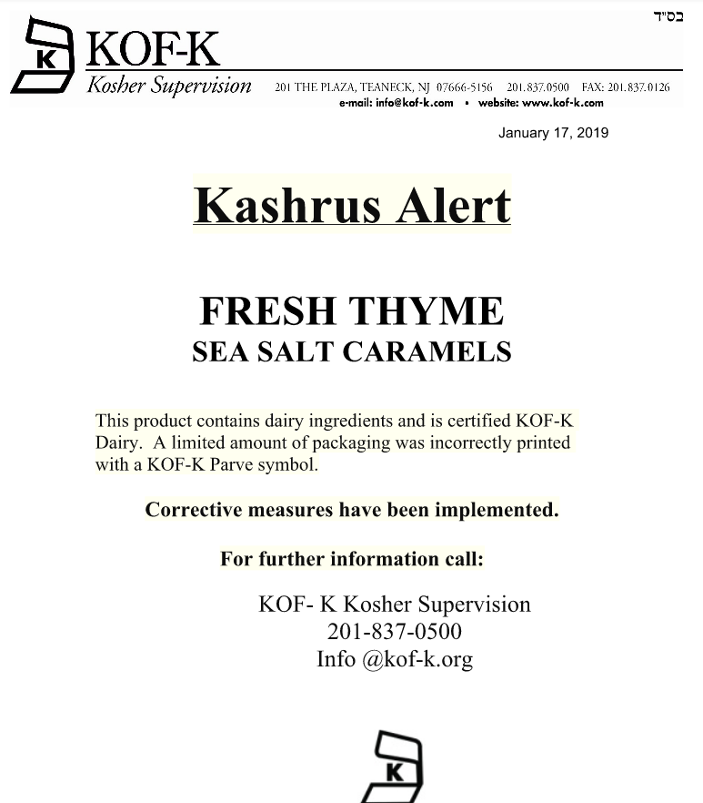 Kashrus Alert – Fresh Thyme- dairy