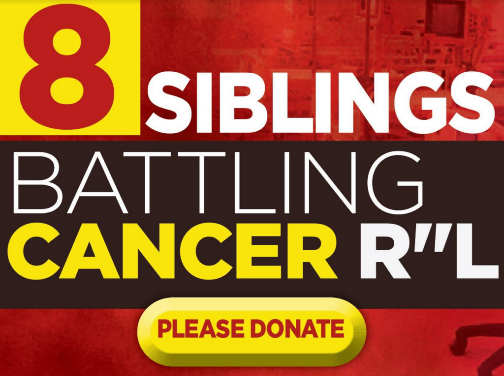 They were once one happy family of 17 with a loving mother and dad, but then tragedy stroke, when 11 of the kids were diagnosed – in a short period of time – with a genetic Cancer called NF 2. But not only that, after a while of tremendous suffering and extensive treatment, their father succumbed to the same genetic Cancer illness and passed away ה”י leaving the entire family and widow to deal with the excruciating pain all ALL ALONE!