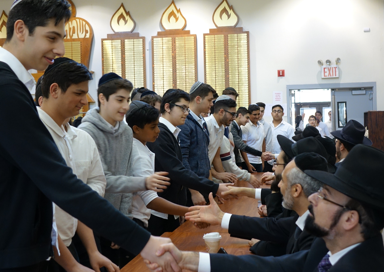 A very poignant part of the afternoon was when the talmidim and talmidos of all divisions-elementary girls, elementary boys, high school boys and high school girls- came into the Shul to pay their respect to the Rabbonim. The boys extended their hands in greeting to the Rabbonim, many bending to kiss their hands in a special display of Kavod HaTorah.