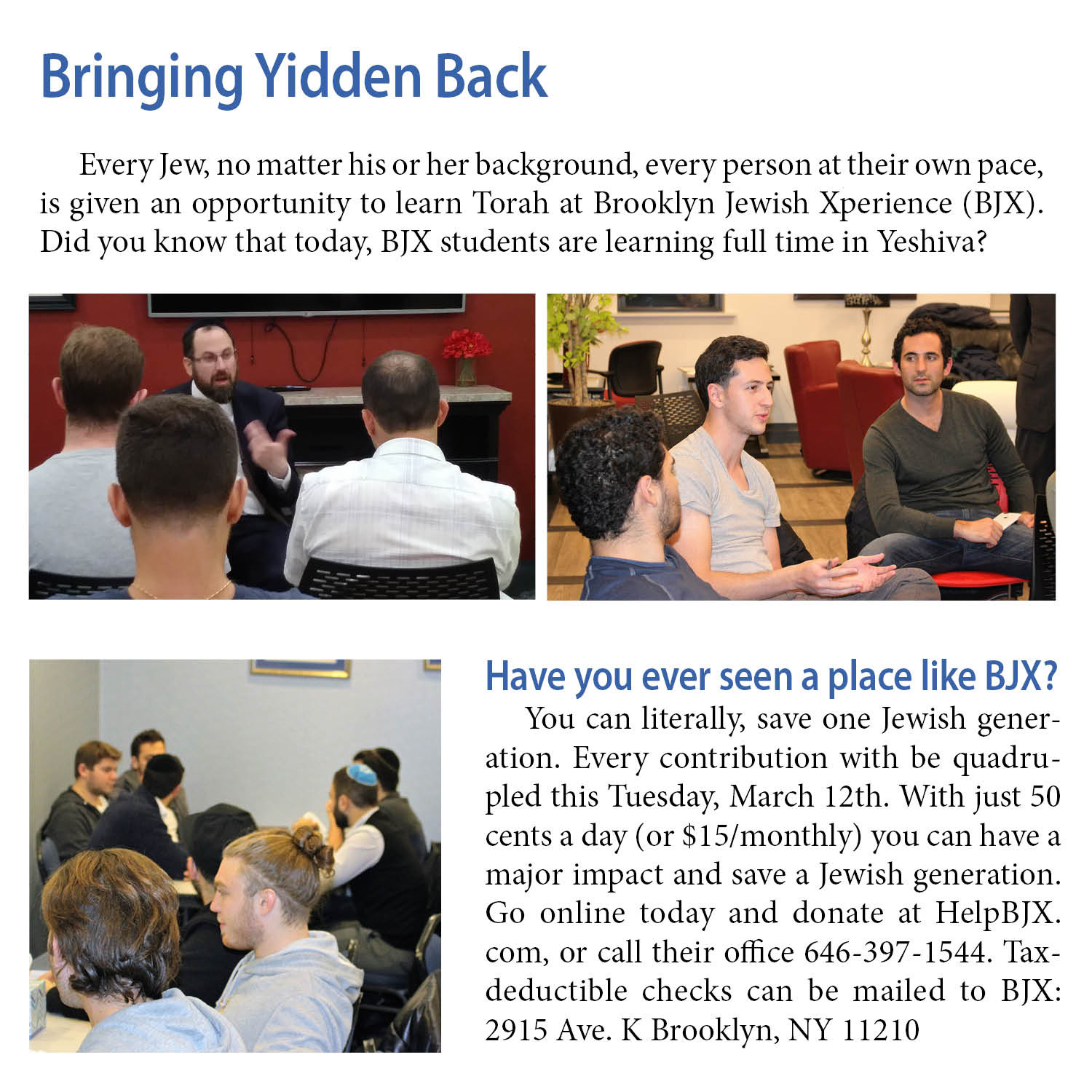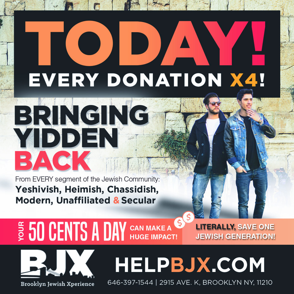 Today! Help BJX Bring Yidden Back: Every donation x4!