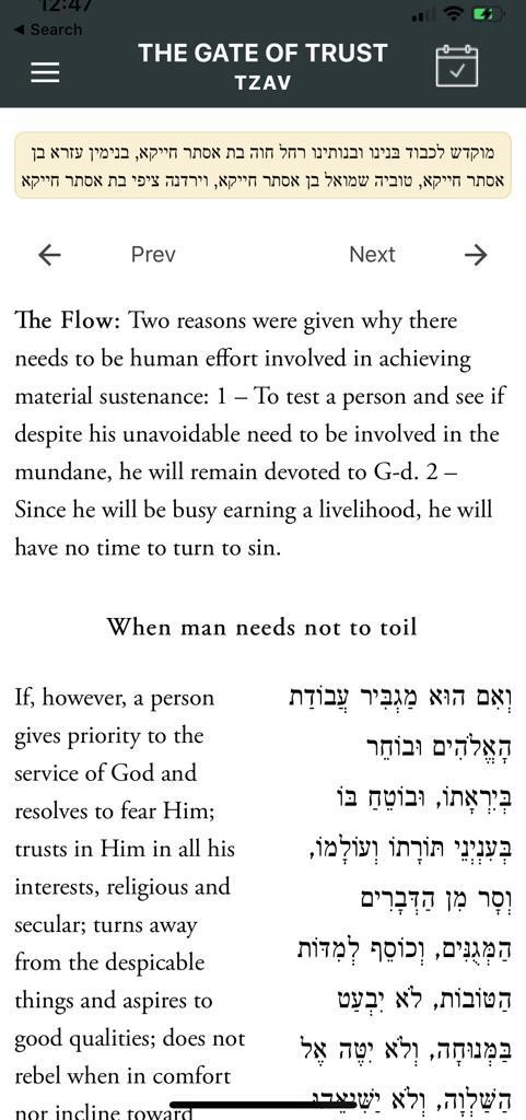 including the weekly Parsha, Rambam, Sha’ar Habitachon, the Taryag
