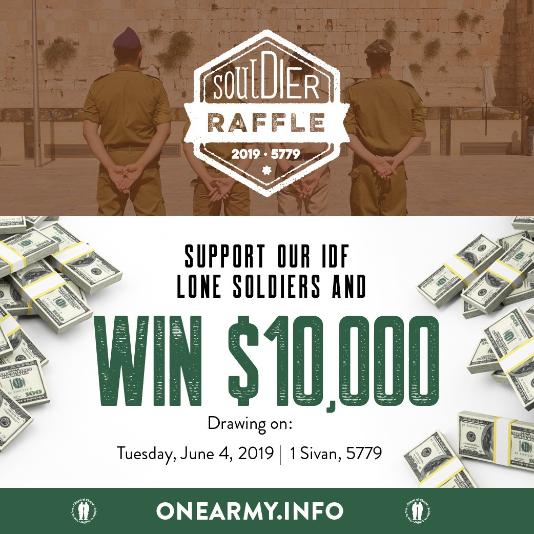 Chayal el Chayal is holding its annual raffle for the prize of $10,000 to help finance their upcoming year of tending to the needs of our Lone Soldiers on the front lines.