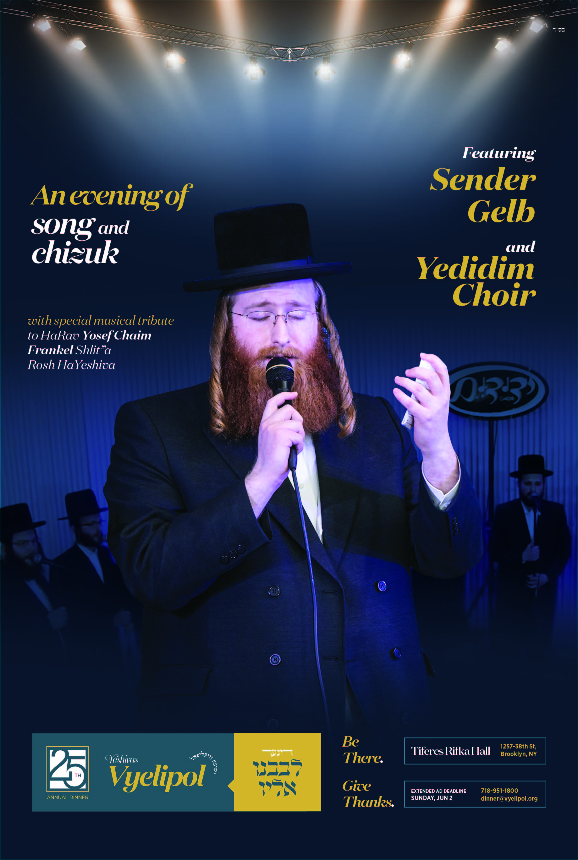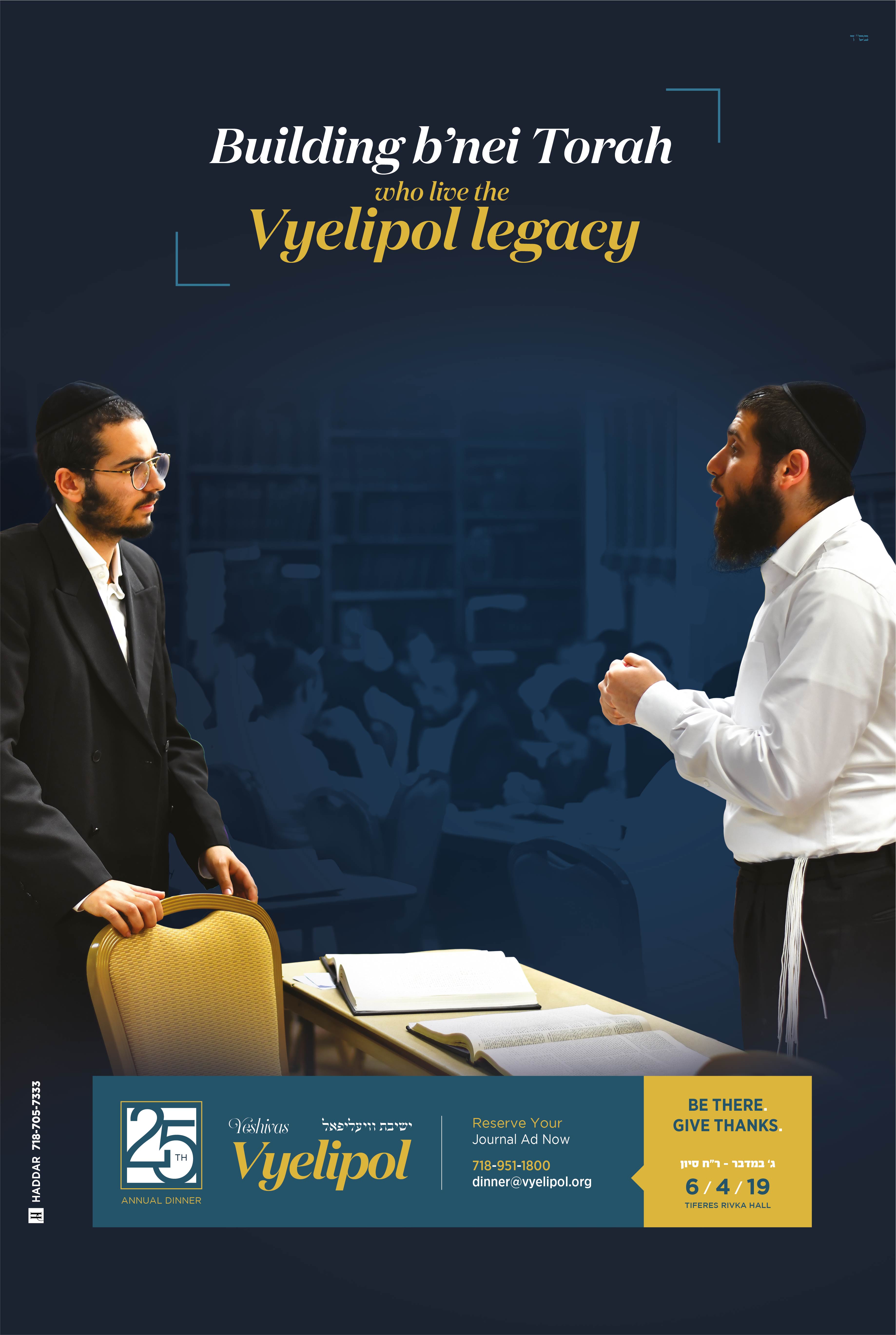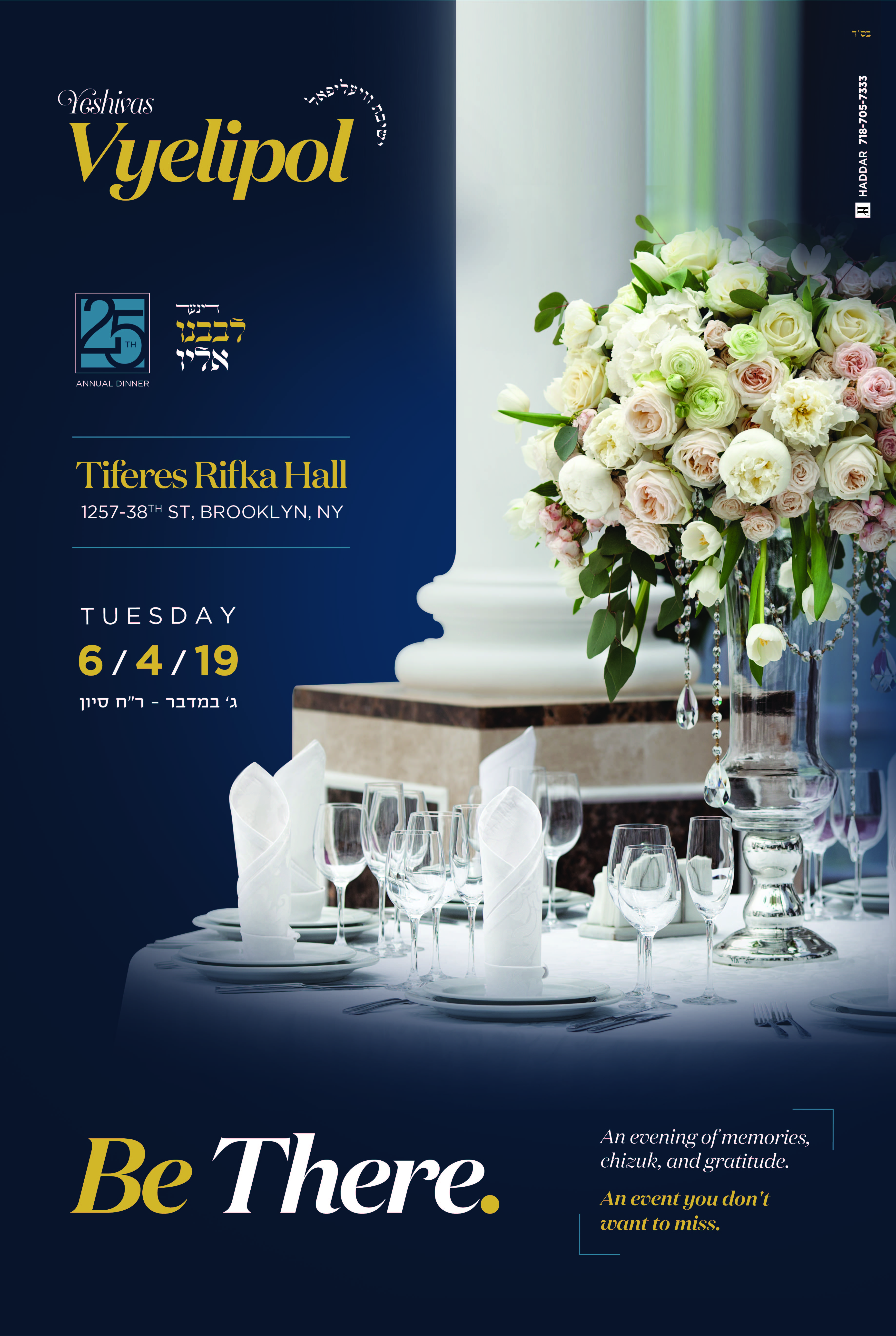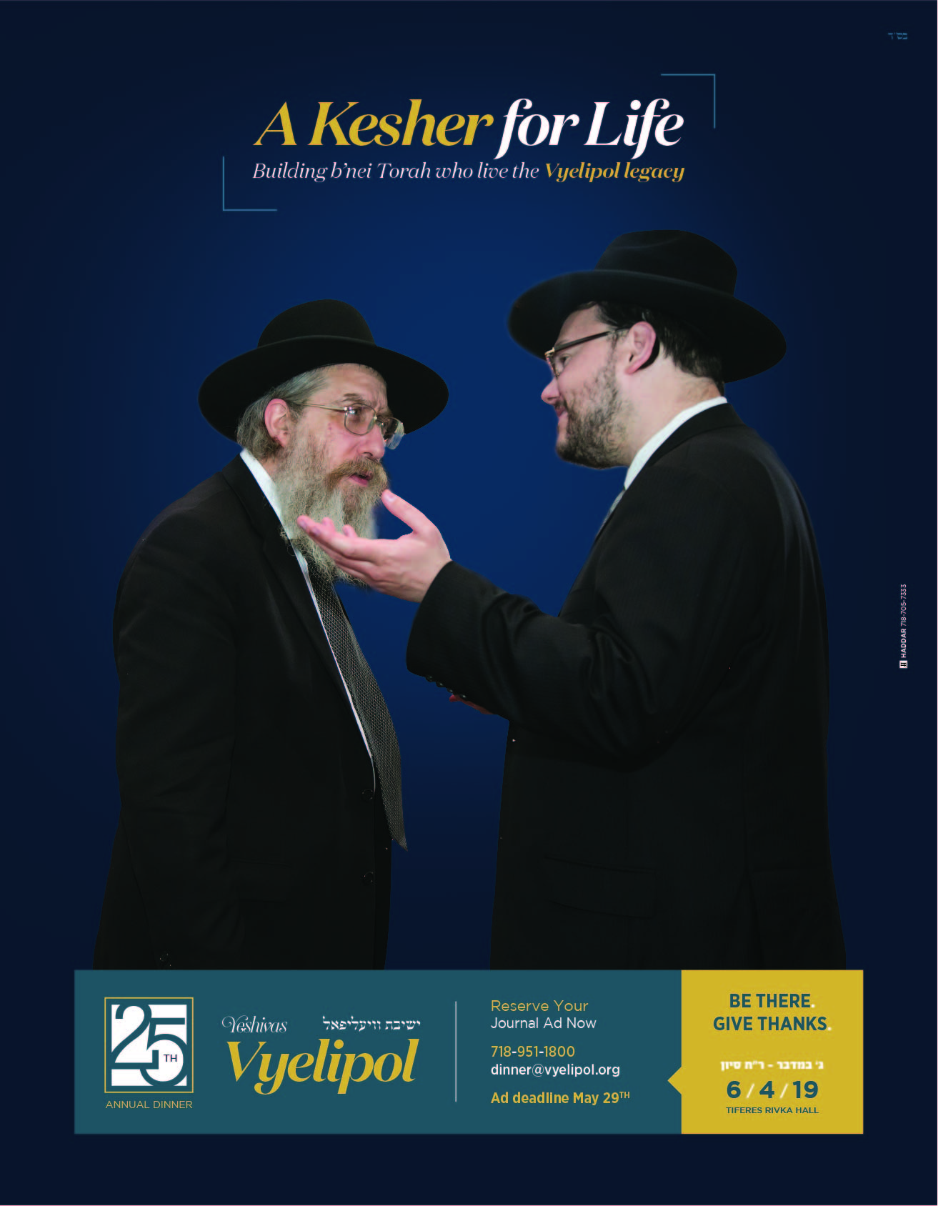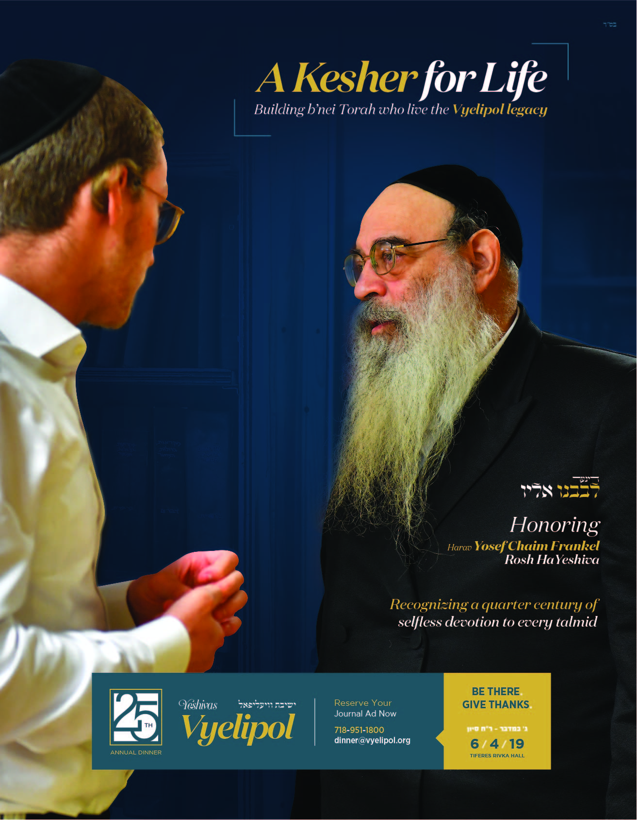 The dinner program promises to be stimulating and inspiring, with a brand-new composition by the world-famous Sender Gelb to honor the Rosh Yeshiva, HaRav Yosef Chaim Frankel. Also in the lineup is a stirring audiovisual presentation featuring never-before-seen footage of Yeshivas Vyelipol’s founding class, along with memorable images and video that encapsulate Vyelipol’s glorious past and present. The event will be chaired by emcee Chaim Fried.
