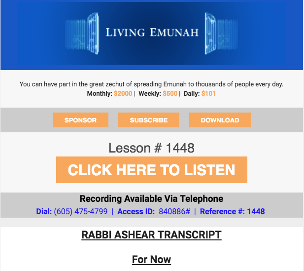 The Gemara says a Rabbi by the name of Elisha ben Avuya once saw a father telling his child to go climb a tree and do the mitzvah of sending away the mother bird and taking the eggs. The boy followed his father’s instructions, but on the way back, he fell and died. After witnessing that, Elisha ben Avuya stopped believing in the Torah because it says that for respecting parents, the reward is long life, and also for sending away the mother bird, the reward is long life. How could that boy have died after doing those two mitzvot? The Gemara says if he would have known the real explanation of the Torah’s guarantee of long life, he would never have fallen from his faith. The reward for those mitzvot is long life in the World that is Eternal – in Olam Haba. It is goodness there, not here. We should never veer from the Torah to the right or to the left because, one day, Hashem Himself will explain what everything meant, and we will see how every word was perfect. For now, we must trust.