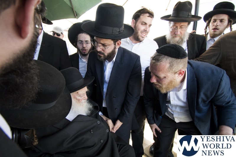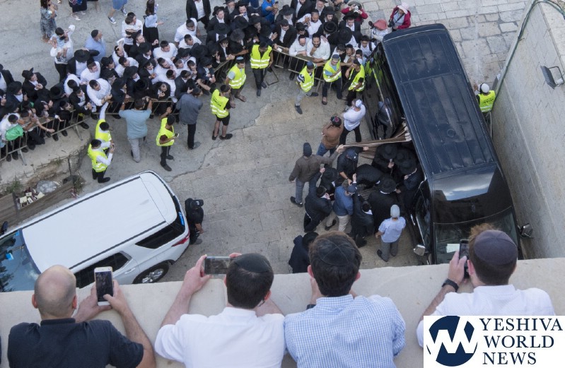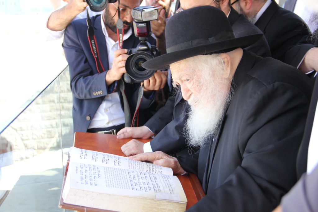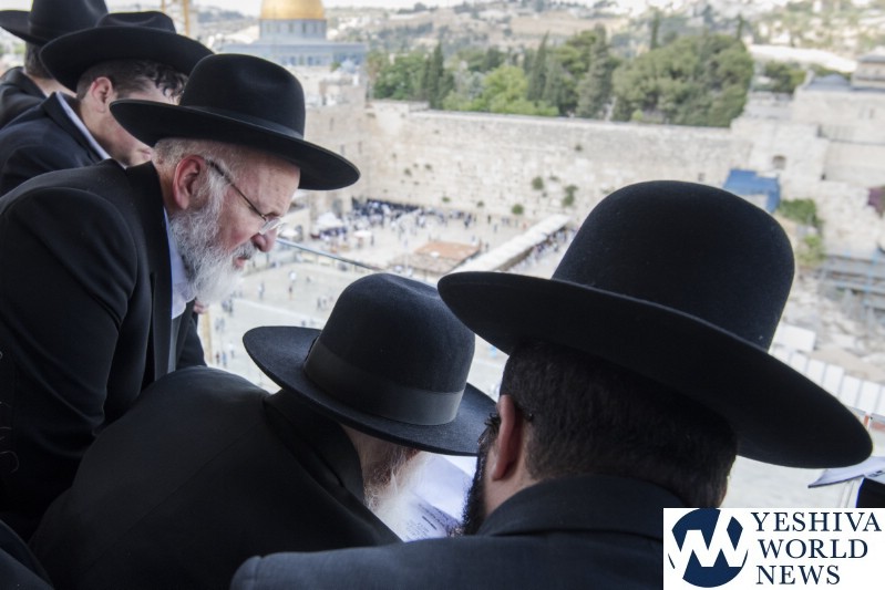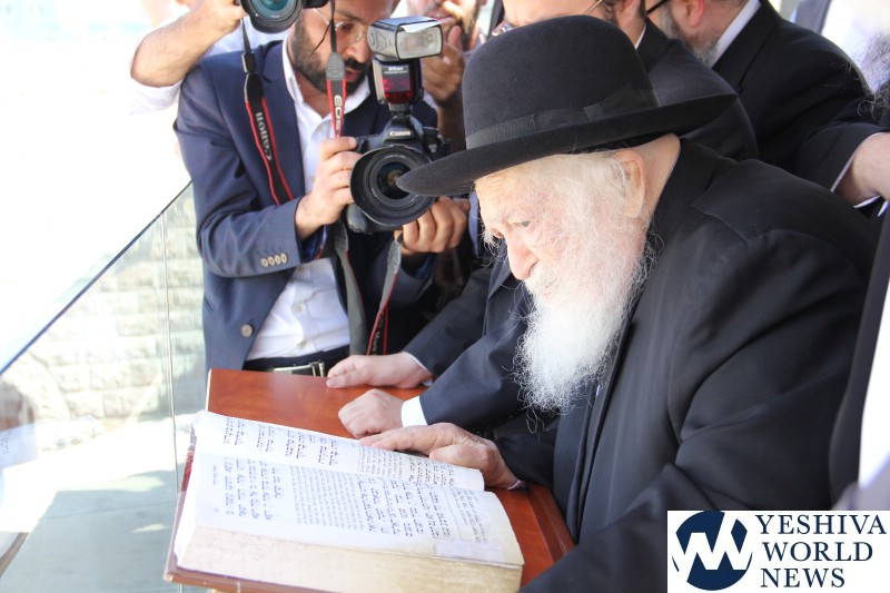 HaGaon Rav Chaim Kanievsky, shlita, visited the Aish World Center, Dan Family Building across from the Western Wall. The entrances of the Aish World Center were packed with people trying to get a glimpse of Rav Chaim. Rav Chaim entered the building through Aish’s Kotel Plaza ‘Hochstein Entrance’ and took the elevator up to the Aish World Center rooftop terrace, overlooking the Kotel and Temple Mount, to daven mincha. The roof of the Aish World Center has a breathtaking panoramic view of the Western Wall, Temple Mount, Mount of Olives and surrounding mountains.