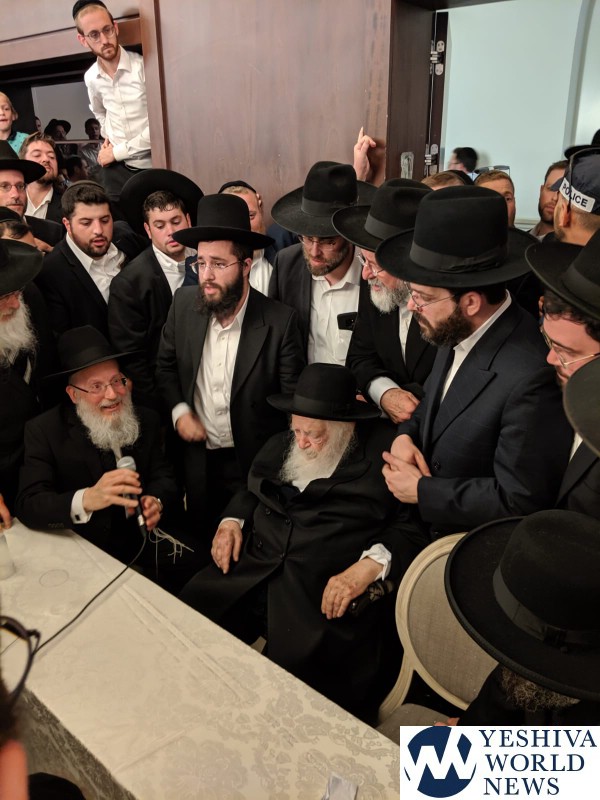 After Mincha, Rav Chaim went downstairs to visit the students and Rebbeim at Yeshivas Aish HaTorah to wish them a bracha and hazlacha.