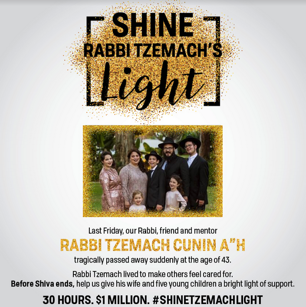 A fund has been launched by friends and congregants to raise $1,000,000 for his family. The goal is to raise the entire amount before shiva concludes. The fund is being overseen by local rabbis and professionals, and will ensure that the Cunin children be cared for with dignity and care.