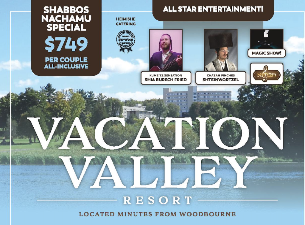 Escape the city heat and join us at Vacation Valley Resort for a beautiful three-day getaway, Featuring chazanus and zemiros by Chazan Pinchas Schteinwortzel