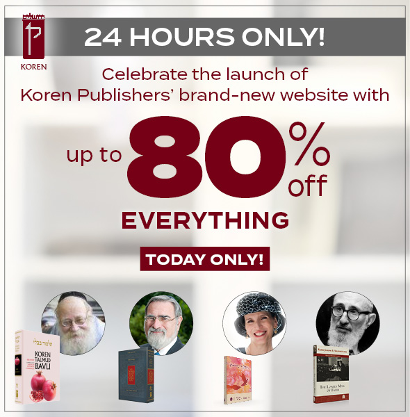 Enjoy huge discounts on your favorite books and sefarim by the leading Torah scholars of our generation: Rav Steinsaltz, Rabbi Lord Jonathan Sacks, Rav Soloveitchik (zt”l), Dr. Erica Brown, Dr. Yael Ziegler, Rabbi Dr. Tzvi Hersh Weinreb, rabbanim from Yeshiva University & more!