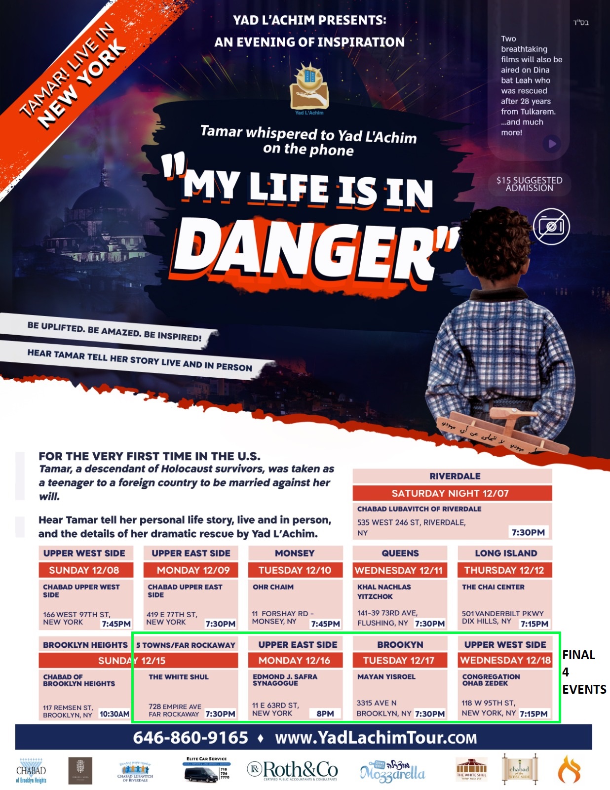 visit www.YADLACHIMTOUR.com for more info (including dates and times) or call 646-860-9165