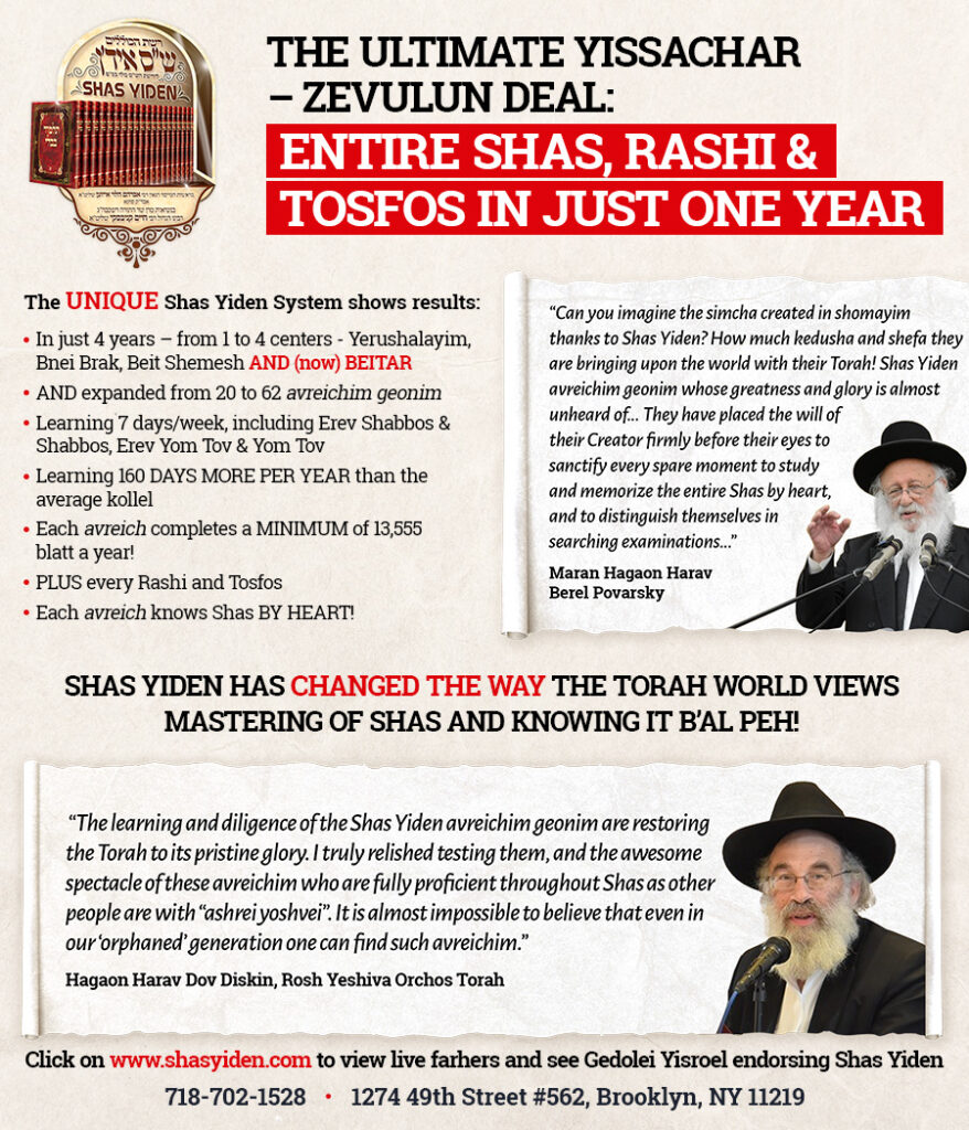 By next year CHANUKAH, the z’chus of Shas, Rashi & Tosfos can be yours thru Shas Yiden Yissacha-Zevulun!