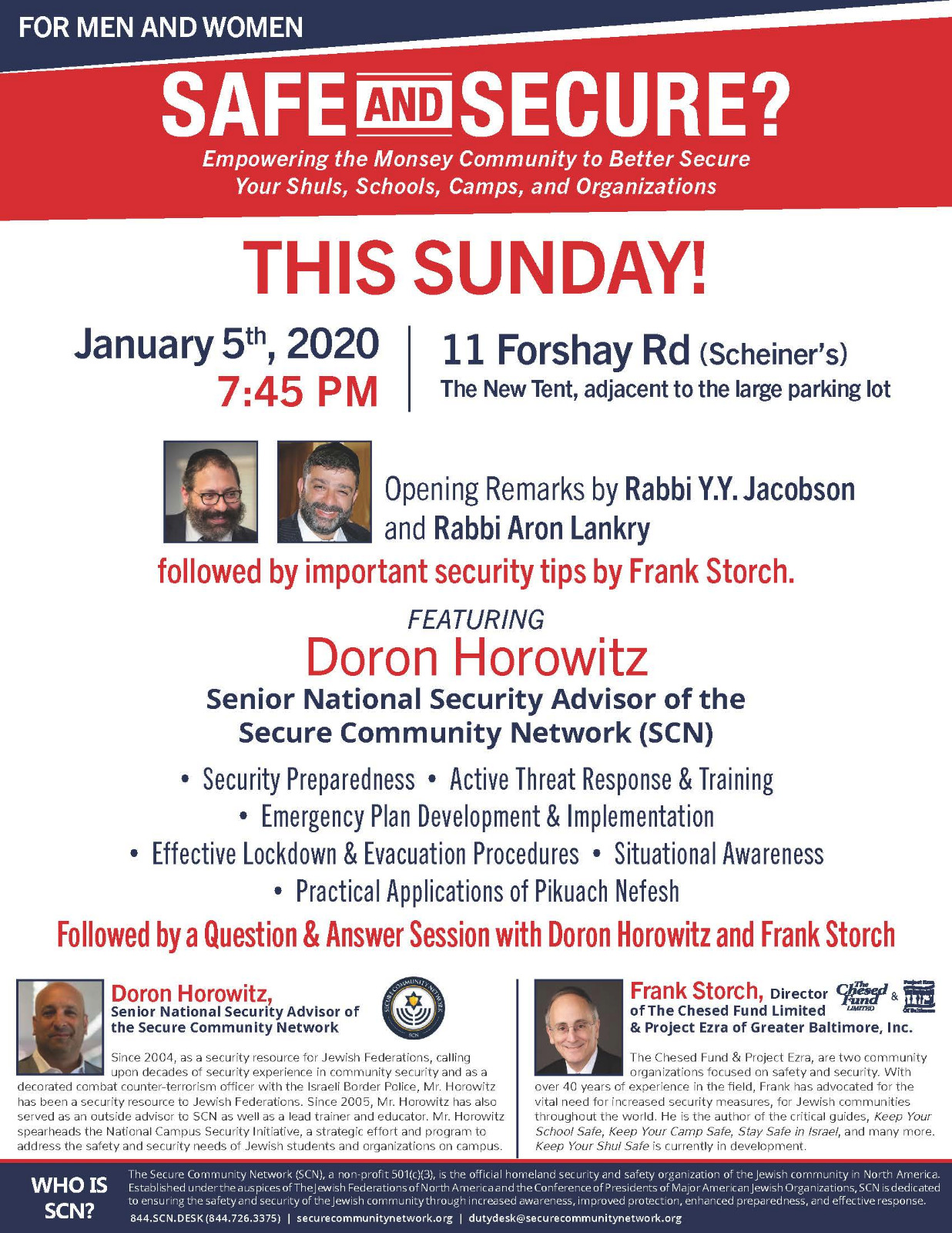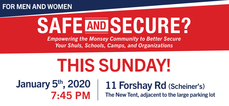 TONIGHT! Safe and Secure? Empowering the Monsey Community to Better Secure Your Souls, Schools, Camps and Organizations
