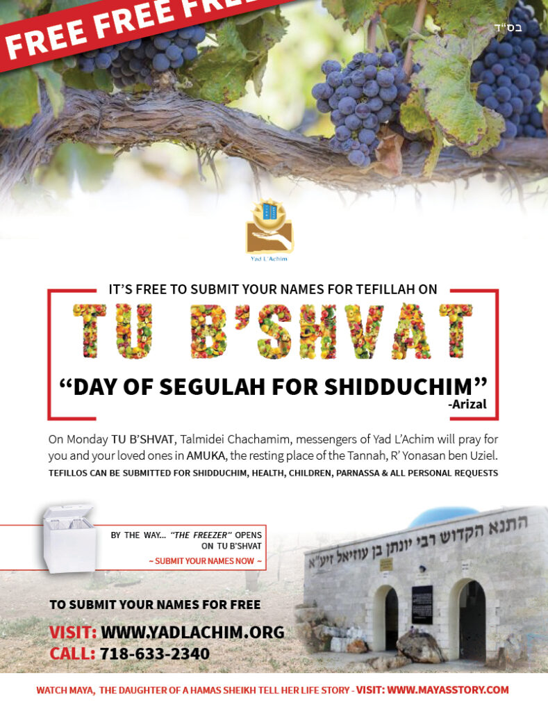 1000’s Have already submitted their names for tefillah for free for the special tefillah on Tu B’Shvat.